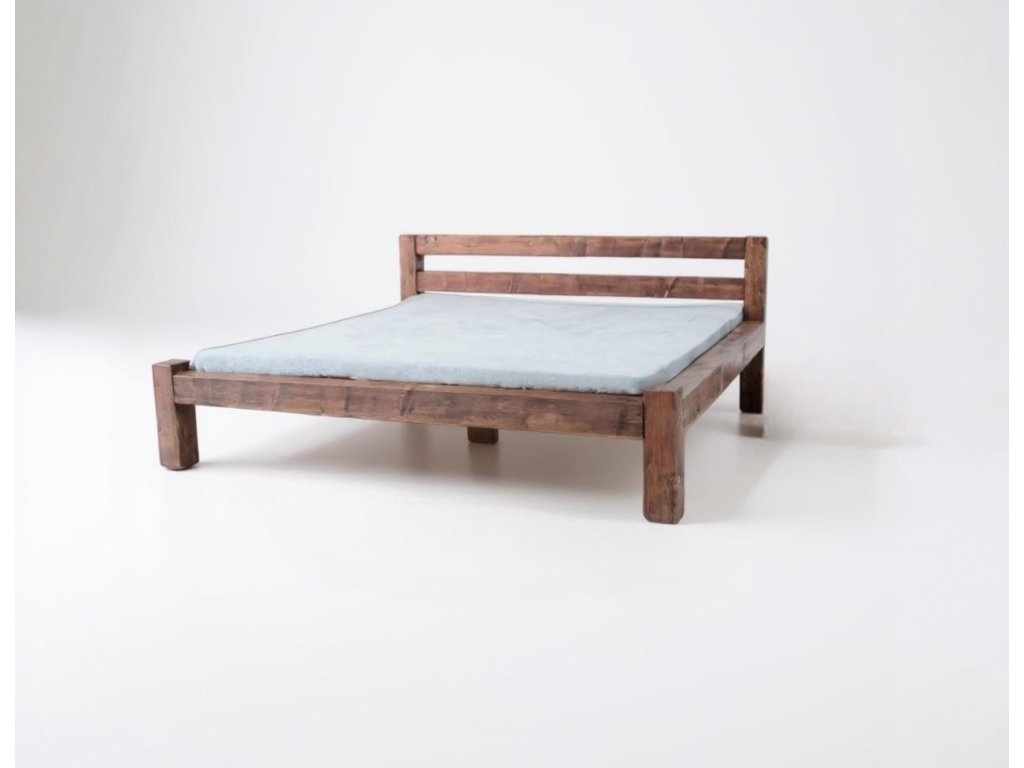 - Materiál: rám a nohy z masivních trámů 10 × 10 cm – postel, která vydrží vše